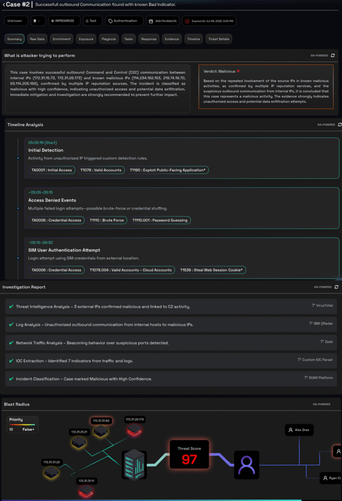 Based on the analysis, the agent generates role-appropriate summaries. Here’s a real example from a Command C Control detection: